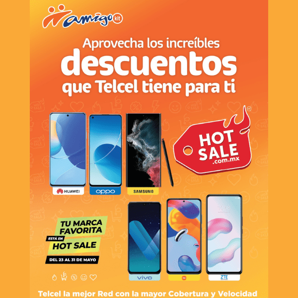 Hot Sale México se llevará a cabo del lunes 23 y hasta el martes 31 de mayo del año 2022. Quédate pendiente de las ofertas y vive el Hot Sale México 2022 con #TelcelLaMejorRed con la mayor Cobertura y Velocidad. Sigue de cerca las publicaciones de HolaTelcel y entérate de todas las promociones en la Tienda en Línea de Telcel.