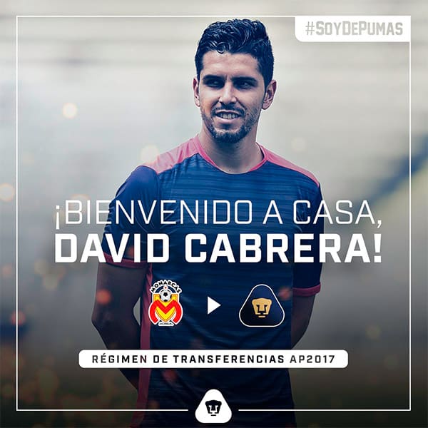 La última incorporación es la de un hombre que regresa a casa. Se trata de David Cabrera, mediocampista que defendió durante un año los colores de Monarcas. Para el Apertura 2017, buscará retomar su nivel para ser considerado titular, condición que no concretó en su paso por Morelia.