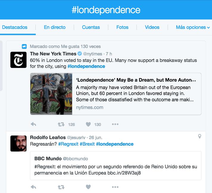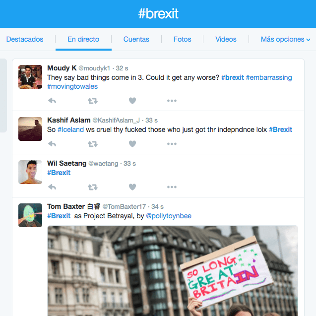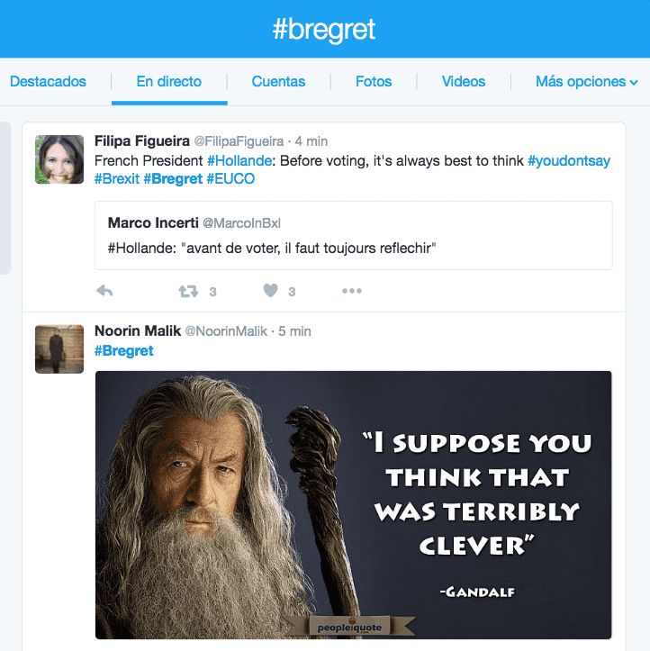 Este es el hashtag que los británicos usaron en apoyo a la decisión de dejar la UE. Después de los conteos, más de 65 mil tweets se registraron con ese HT.