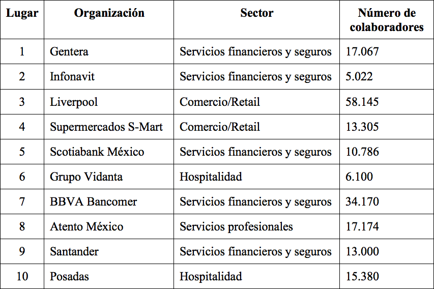 En México, la metodología de Great Place to Work está certificada por el Instituto Mexicano de Normalización y Certificación, A.C. Asimismo, cuenta con el respaldo de la firma Grant Thornton, así como la integración del ranking de “Las Mejores Empresas para Trabajar en México”.