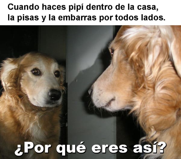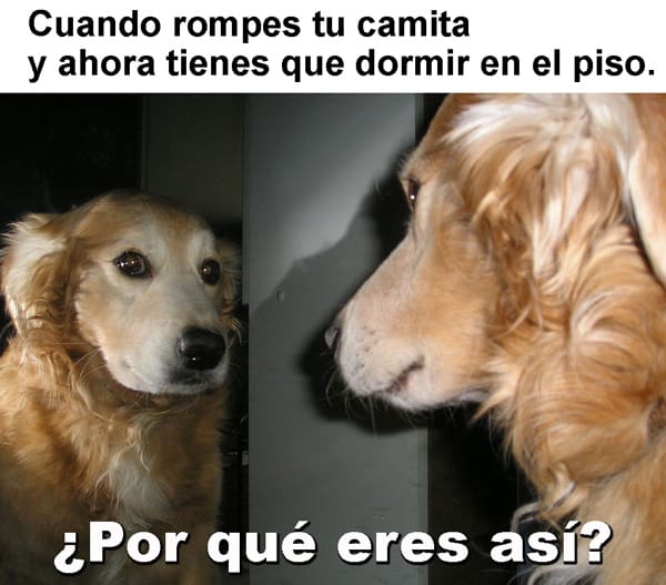 Los usuarios de Internet no tardaron en tomar la imagen para agregarle toda clase de textos, que representan las posibles reflexiones que podría tener tu querido perro ante situaciones en las que su comportamiento no ha sido el mejor.