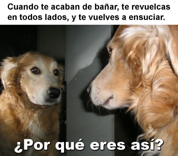 Estas últimas semanas, en las redes sociales han estado circulando mucho versiones de un meme, en el que aparece un perro de la raza Golden Retriever mientras se mira al espejo en actitud reflexiva.