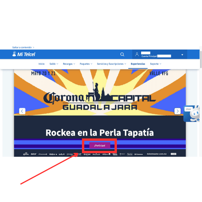 2. Busca la dinámica para Corona Capital Guadalajara en la imagen pricipal o en la parte inferior del sitio y Da clic en el boton! de ¡Participa!