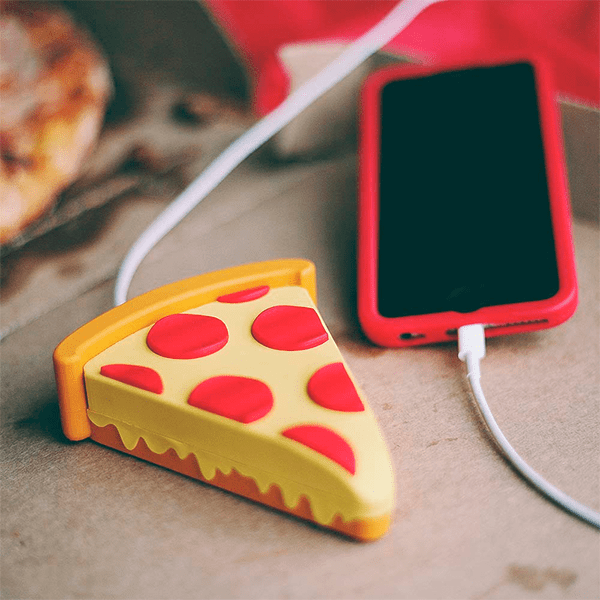 Para nuestros amantes de las pizzas, tenemos la fuente de energía perfecta para tu móvil. Lleva a todas partes esta simpática pila portable que se hace pasar por una rebanada de una de las comidas más deliciosas de Italia.