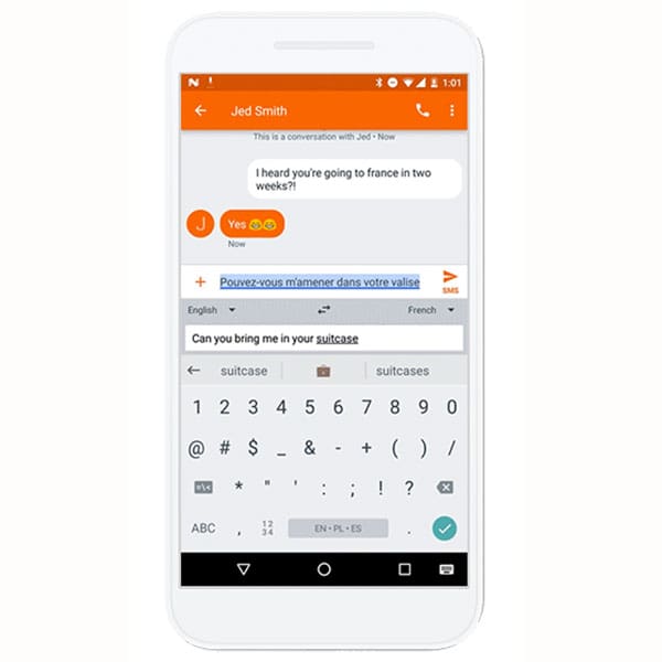 Puedes ir despidiéndote de los días en los que tenías que copiar un texto en otro idioma para pegarlo en Google Translate y viceversa. Gracias a la implementación de Google Translate al teclado, podrás enviar mensajes en otros idiomas en tiempo real sin necesidad de salir de la aplicación que estás usando. Por ejemplo, ahora podrás escribir tus mensajes en español y simultáneamente serán traducidos y enviados en francés.