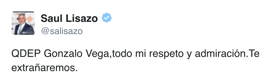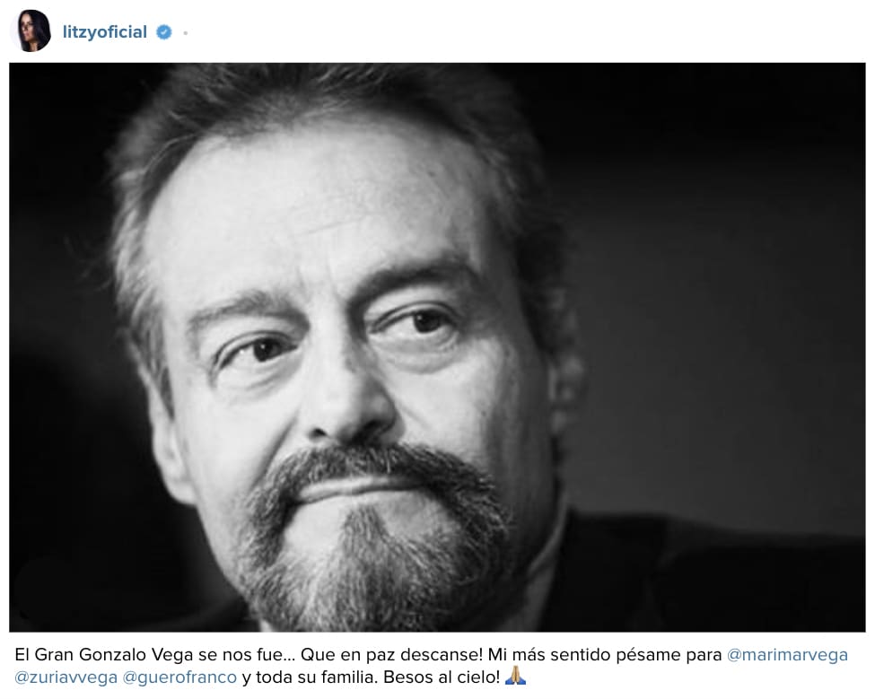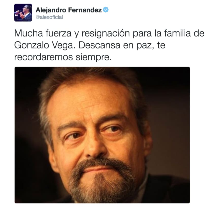 Tras el anuncio de la noticia, celebridades mexicanas no tardaron en demostrar su tristeza en las redes sociales, dedicándole unas palabras a Gonzalo Vega y a su familia a través de sus respectivas cuentas de Instagram y Twitter.