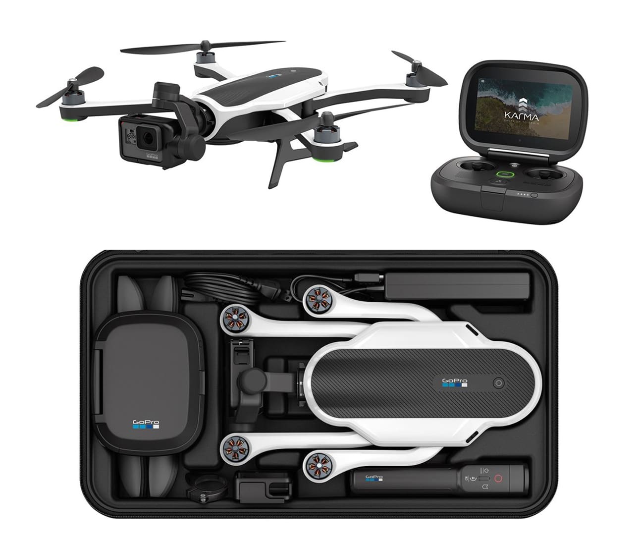 Karma fue presentado como un “cuadricóptero de diseño plegable”, por lo que transportarlo dentro de una mochila no representa ningún desafío. En su estuche también cabe un control de alto alcance en forma de concha, el cual cuenta con una pantalla de 5 pulgadas (720p).