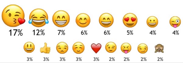 Al dividir a los encuestados en hombres y mujeres, los resultados cambian. Ellos prefieren los emojis del rostro con ojos sonrientes y la boca abierta, así como el pulgar arriba, mientras que ellas usan más el rostro que guiña un ojo y envía un beso con corazón y el rostro feliz con ojos sonrientes y rubor en las mejillas.