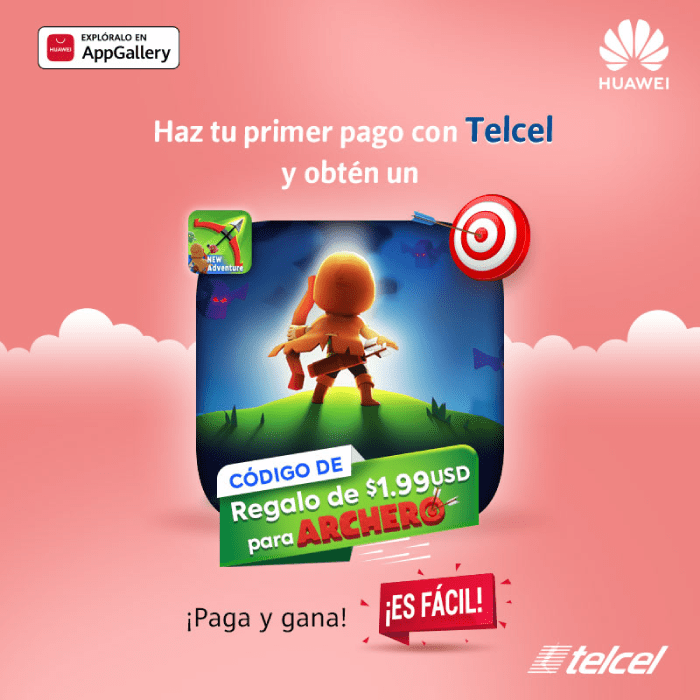 Al realizar tu primera compra en Huawei AppGallery con cargo a tu factura Telcel, podrás obtener un código de regalo para Archero.