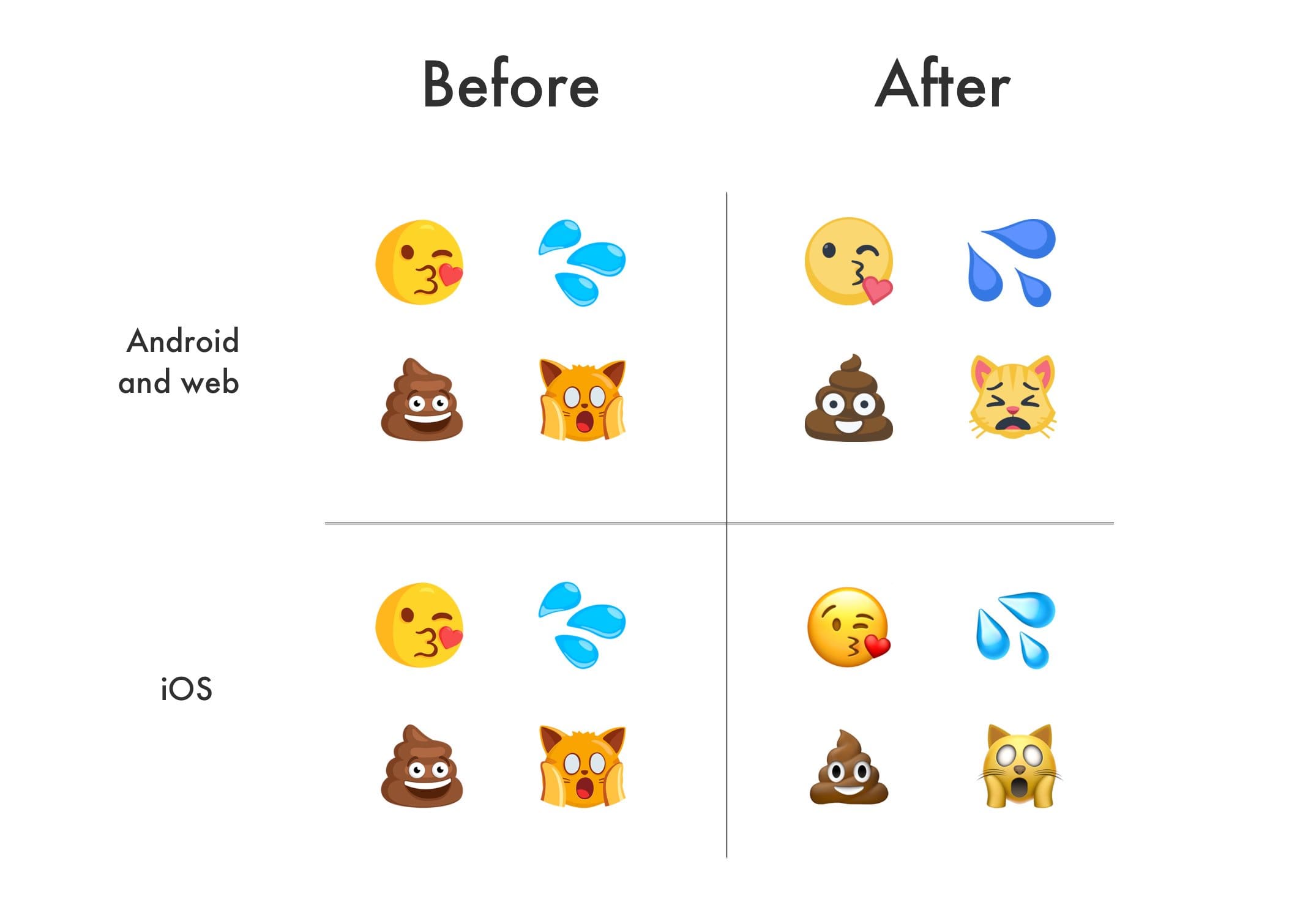En los últimos meses, algunos usuarios de Facebook y Messenger tuvieron confusión por las variaciones en sus emojis. Ya sabes, antes su paquete (para Android y web) estaba conformado por una simpática criatura que parecía una masa. Aunque tiempo después los modificaron a unos similares a los convencionales, los emojis de una plataforma variaban con respecto a la otra. En iOS, la situación era bastante similar.