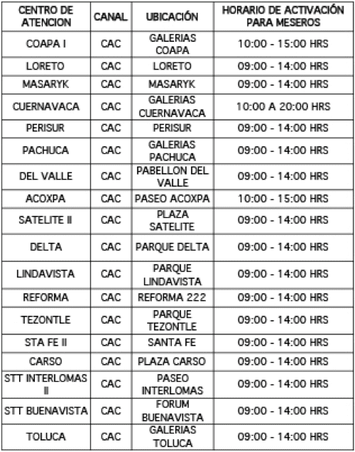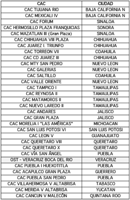 Acude a cualquiera de los siguientes Centros de Atención a Clientes en la Ciudad de México y en el Área Metropolitana: