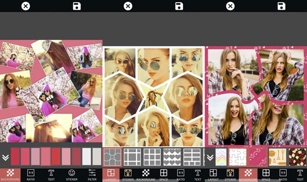 Disponible para Android, esta plataforma te permite combinar tus fotografías al usar alguna de sus plantillas prediseñadas, o bien, elegir un color o diseño de fondo, para colocar sobre éste las imágenes a tu gusto.