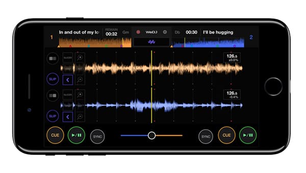 WeDJ para iPhone tiene una colorida interfaz animada que muestra toda la información de las pistas. Asimismo, los controles necesarios para mezclar. Además, los colores de las formas de onda y los jog wheels cambian según los tonos cromáticos de la imagen de portada del disco. Con esto, tendrás claro lo que hay en cada tornamesa virtual.