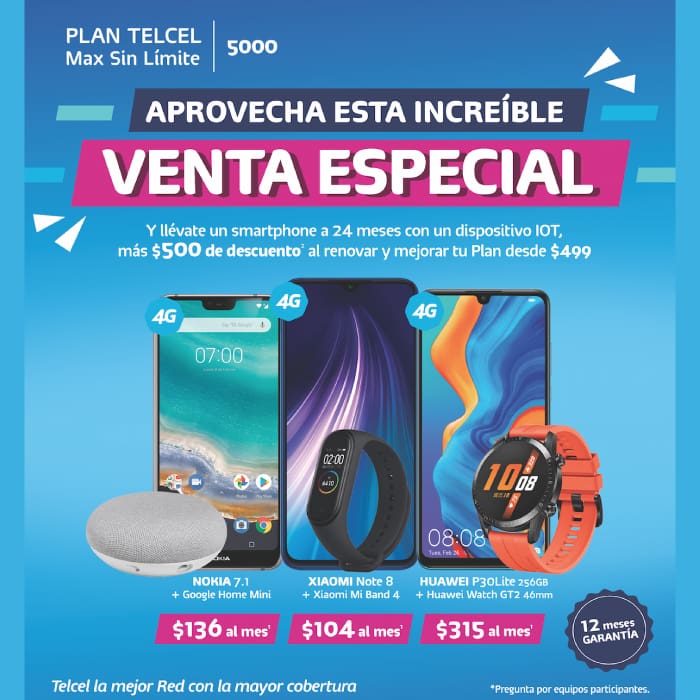 Si estabas pensando en renovar tu Plan Telcel Max Sin Límite 5000 y hasta mejorarlo, nosotros tenemos la razón suficiente para que lo hagas; Telcel tiene una venta especial a partir del 13 y hasta el 16 de marzo en donde te puedes llevar un smartphone totalmente nuevo a 24 meses con un dispositivo IOT, más $500 de descuento al renovar tu Plan desde $499.