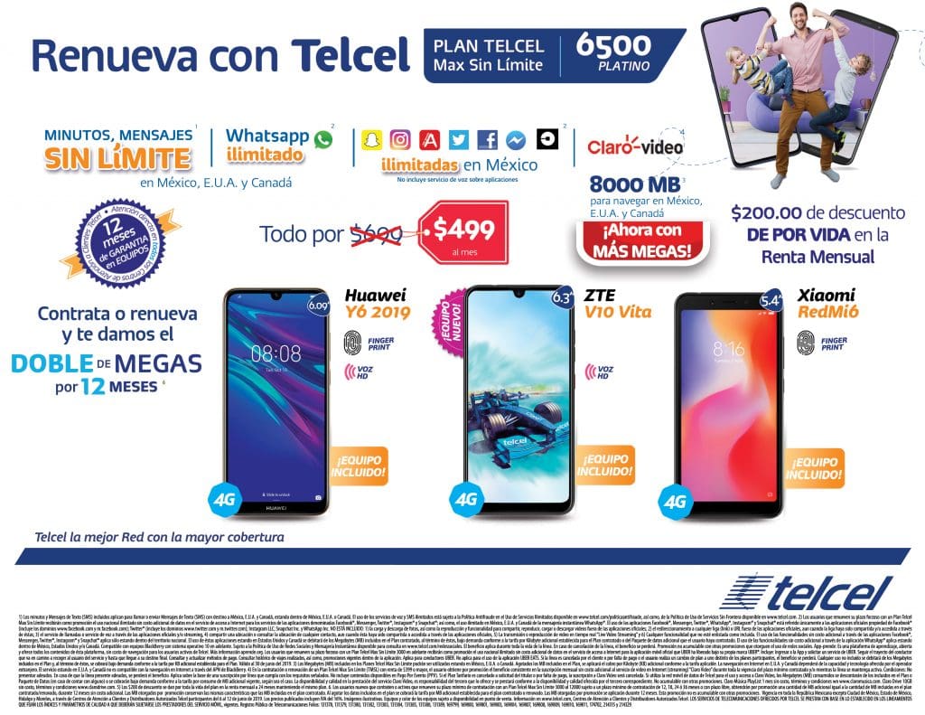Renueva con Plan Telcel Max Sin Límite 6500 Platino