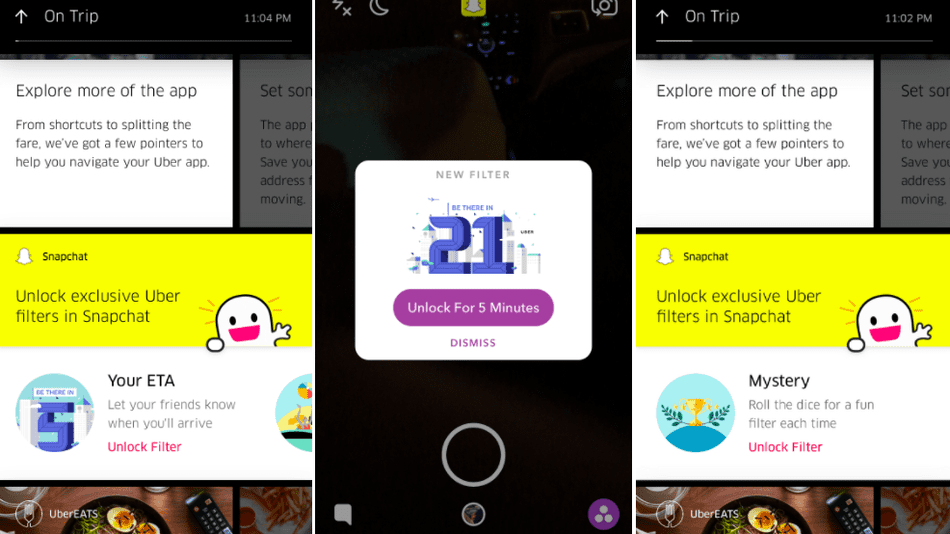 Además, Snapchat no es el único amigo de Uber, pues el servicio de transporte privado también cuenta con integraciones de Yelp y Foursquare.