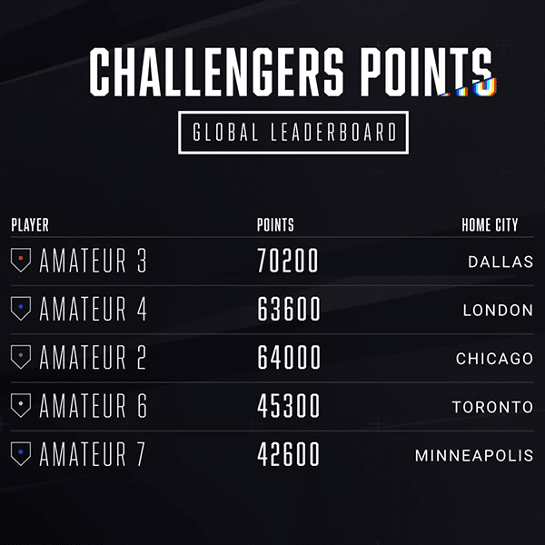 Call of Duty Challengers, será el camino oficial para ir de amateur a profesional, donde se experimentará un espejo de las reglas y modos de juegos del nivel pro. Los equipos podrán ganar puntos challenger en torneos en línea o eventos en vivo. Lo que les dará una posición en la tabla; así como la posibilidad de ganar dinero y otros premios a lo largo de la temporada. Solo un equipo amateur podrá ser coronado en la final de challengers.