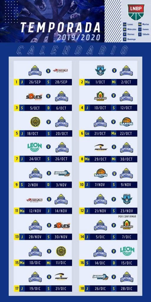 Por fin ha dado inicio a la temporada 2019-2020 de la Liga Nacional de Baloncesto Profesional (LNBP); la cual comenzó el pasado 19 de septiembre, con la participación de 18 equipos, entre los que están incluidos; Capitanes de México.