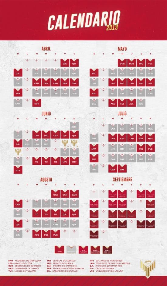Calendario Diablos Rojos: