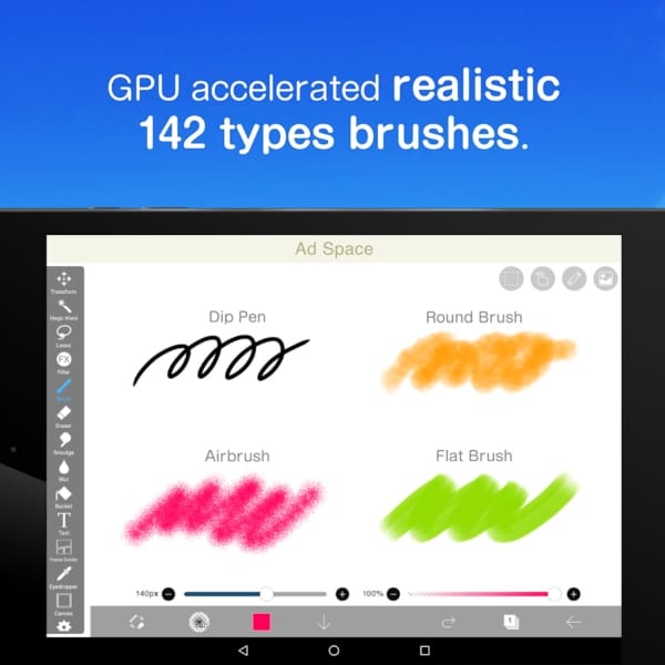 Es una de las apps más detalladas que existen para Android. Podrás elegir entre más de 80 pinceles y usar distintas capas para tu obra de arte. Es súper intuitiva y promete convertir tu dispositivo en un lienzo casi real.