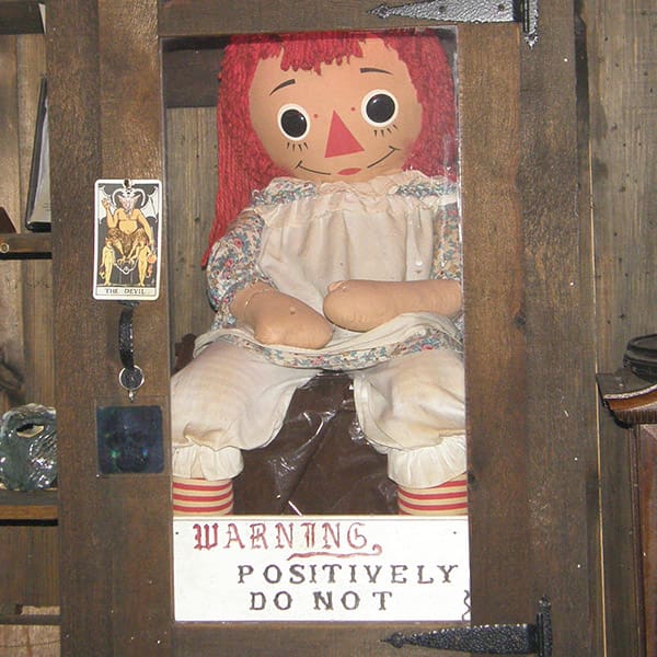 1. La muñeca original de Annabelle se encuentra en el pueblo de Monroe, Connecticut, en el museo de objetos paranormales de los Warren. Se exhibe junto a otras 10,000 piezas recolectadas a lo largo de 30,000 investigaciones. La muñeca se encuentra dentro de una vitrina especial y está estrictamente prohibido tocarla.