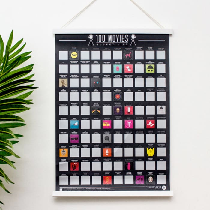 Si eres de los que prefiere quedarse en casa y sentarse a disfrutar de una buena película junto a un tazón gigante de palomitas, entonces este increíble póster puede ser la solución para no perder horas eligiendo qué ver, y mejor aprovecharlas para ver otro clásico del cine. Incluye 100 películas que podrás rascar conforme las veas; además es excelente como decoración y un must para todo amante del cine.
