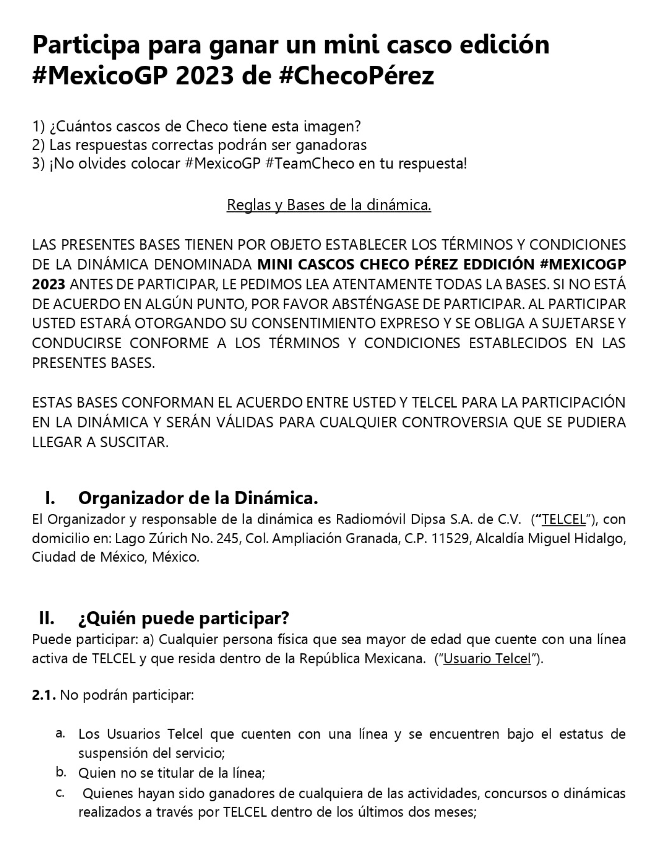 Bases participa para ganar un mini casco edición #MexicoGP 2023 de #ChecoPérez