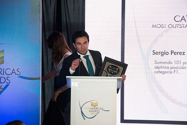 Gracias a una extraordinaria temporada 2016, en la que finalizó séptimo en el campeonato de pilotos de Fórmula 1, Sergio Pérez fue laureado por la FIA como el Piloto Destacado de América.