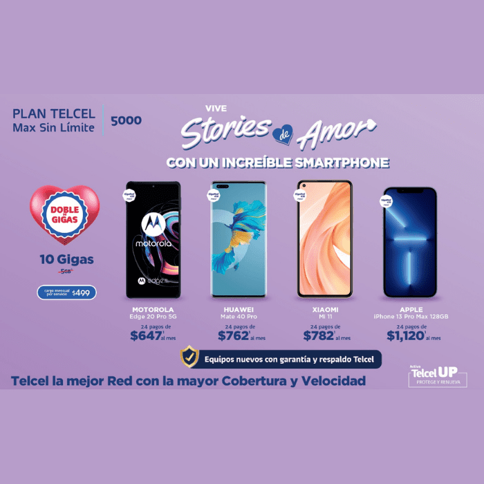 Vive stories de amor con un increíble smartphone en un Plan Telcel
