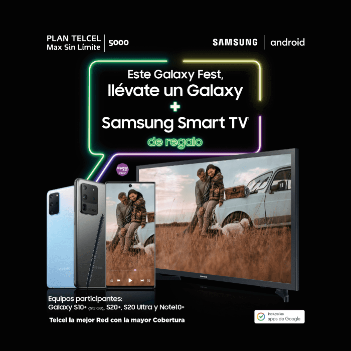 Para ello tienes que adquirir uno de los equipos Samsung participantes, contratando o renovando tu Plan Telcel Max Sin Límite 5000 o superior a 24 meses y la pantalla Samsung Smart TV será completamente tuya gratis. Pero deberás darte prisa, ya que la vigencia de la promoción es del 1 al 30 de octubre de 2020.