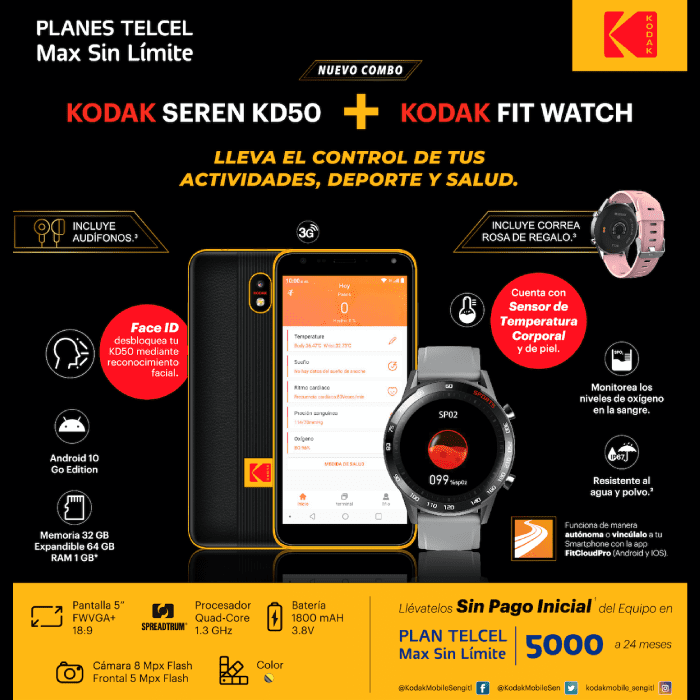 Esta Navidad déjate sorprender por Telcel y Kodak al estrenar un nuevo Kodak Seren KD50 más un Kodak Fit Watch, el combo perfecto.