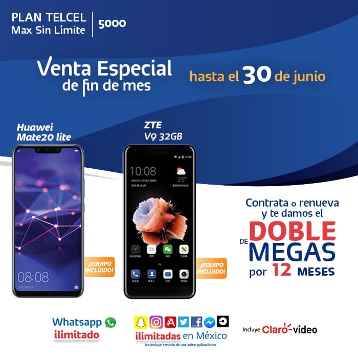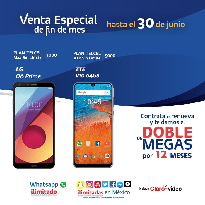 El verano comienza, momento de aprovechar la gran Venta Especial de Fin de Mes, donde al renovar tu Plan Telcel puedes llevarte un equipo totalmente nuevo, entre ellos: un LG Q6 Prime, un ZTE V10 64GB o un Huawei Y6 2019. ¡Es ahora o nunca!