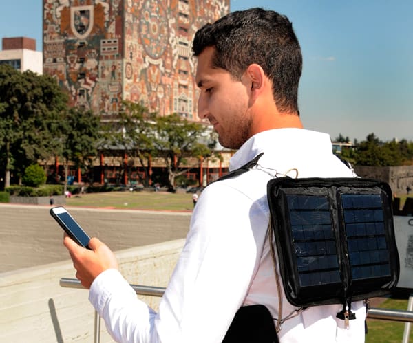 Con la idea de dar una solución a los usuarios que pasan periodos considerables fuera de la casa o la oficina y para quienes buscan una solución ecológica al uso de sus gadgets, Alejandro Crespo, estudiante de la Facultad de Ingeniería de la UNAM, fabricó un cargador solar portátil que convierte la luz del Sol en electricidad.