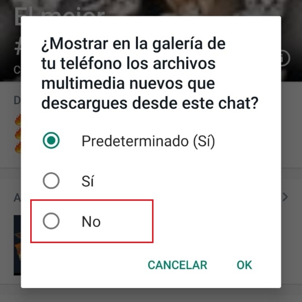 En Visibilidad de archivos multimedia puedes configurar que las fotos de WhatsApp no se guarden en tu galería.- Blog Hola Telcel