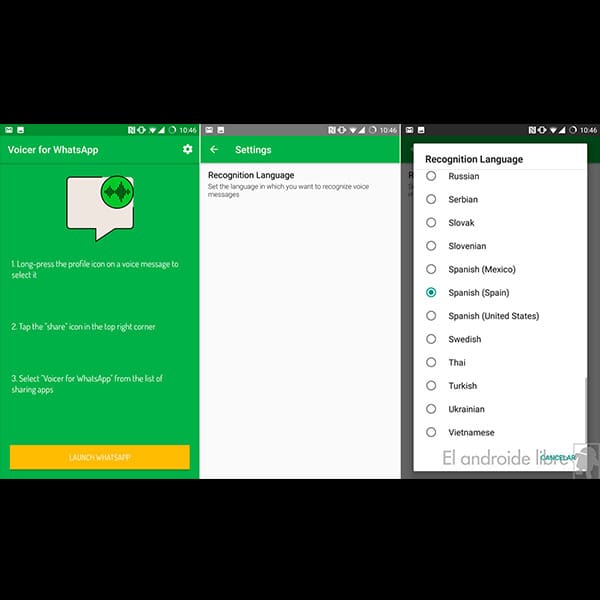 Ante esta situación, un usuario de Reddit creó para Android, una app que nos soluciona el problema: Voicer for WhatsApp. Con una interfaz muy sencilla de usar, Voicer puede transformar un audio recibido en un mensaje de texto para leerlo al instante.