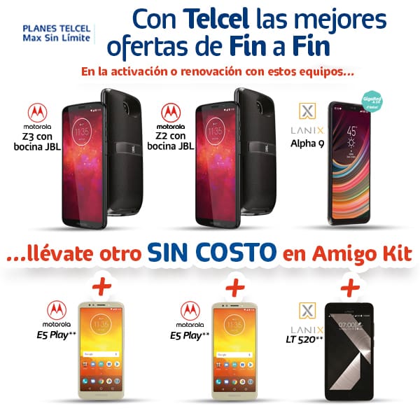 ¡Prepárate!, porque la Red de mayor cobertura te ofrece los auténticos 2×1 en equipos. Todo lo que deberás hacer será escoger uno de los equipos Huawei, LG, Motorola y LANIX participantes y llevártelo con un Plan Telcel Max Sin Límite. Así, automáticamente podrás llevarte sin costo otro smartphone participante en Amigo Kit. Conoce más sobre estos modelos en la Tienda en Línea.