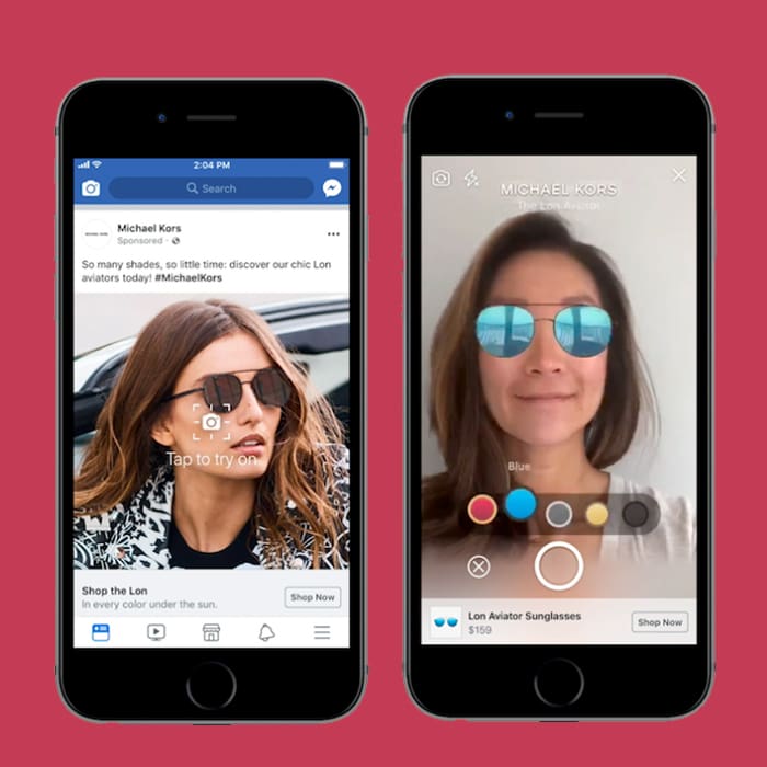 La prestigiosa marca Michael Kors es la primera en integrar esta tecnología para que los usuarios se prueben sus lentes. Así podrán ver si las gafas van bien con su forma de cara y si los quieren adquirir. Según lo que explicó la VP de marketing de producto de Facebook, Ty Ahmad-Taylor, esto hará que comprar desde la app sea una experiencia más inmersiva.