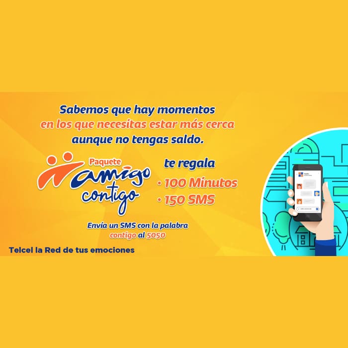 En momentos como este sabemos que es importante estar más cerca de los que quieres, sin importar que tu equipo no tenga saldo, es primordial tener un respaldo para emergencias y saber de los tuyos desde tu hogar y en cualquier instante. Por esa razón, Telcel tiene para ti el Paquete Amigo Contigo, el cual te brinda 100 minutos y 150 mensajes de texto totalmente gratis para ponerte en contacto con quienes más quieres.