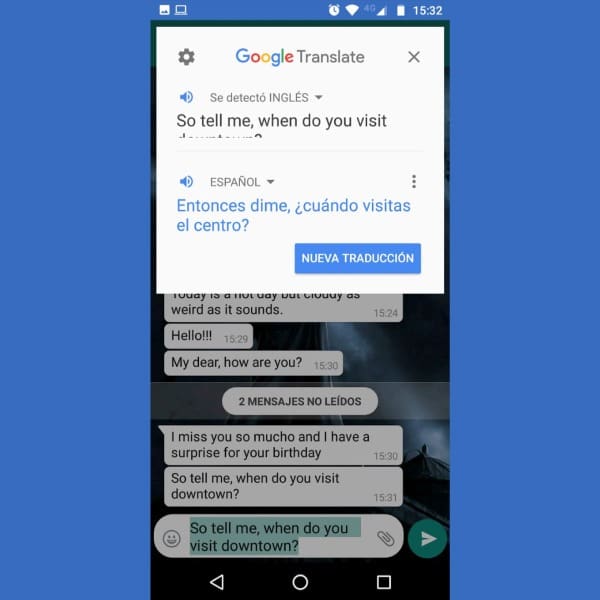 Google Traductor te permite hacer lo inverso; es decir, si quieres responder en inglés a ese contacto de WhatsApp, solo debes traducir la frase en español que quieres expresar. Además, funciona en varios idiomas.